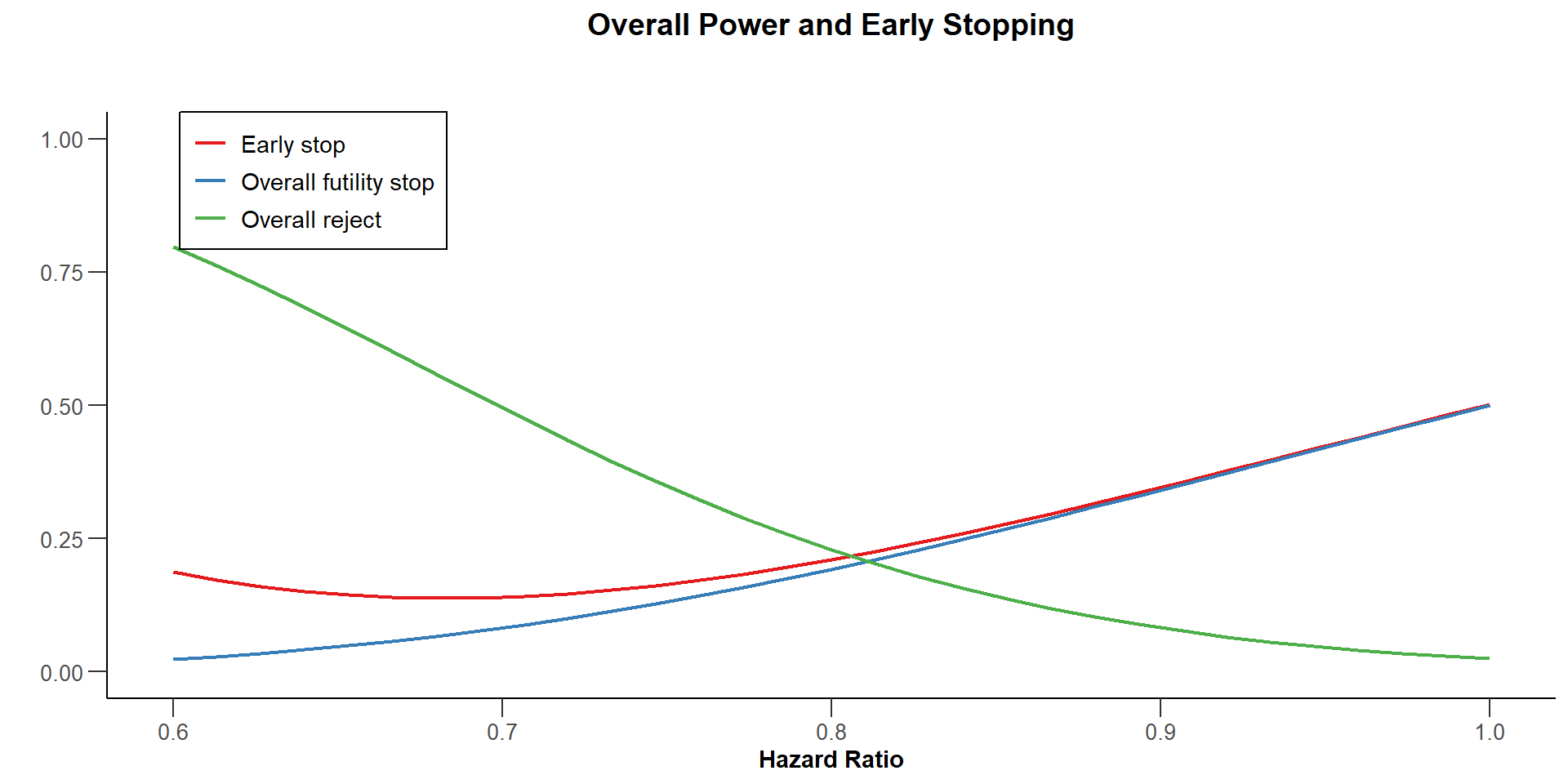 | Exit probability for futility (under H1), HR = 0.6 | 0.0235 | |