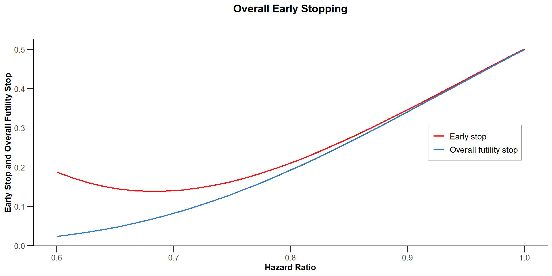 | Exit probability for futility (under H1), HR = 1 | 0.5000 |